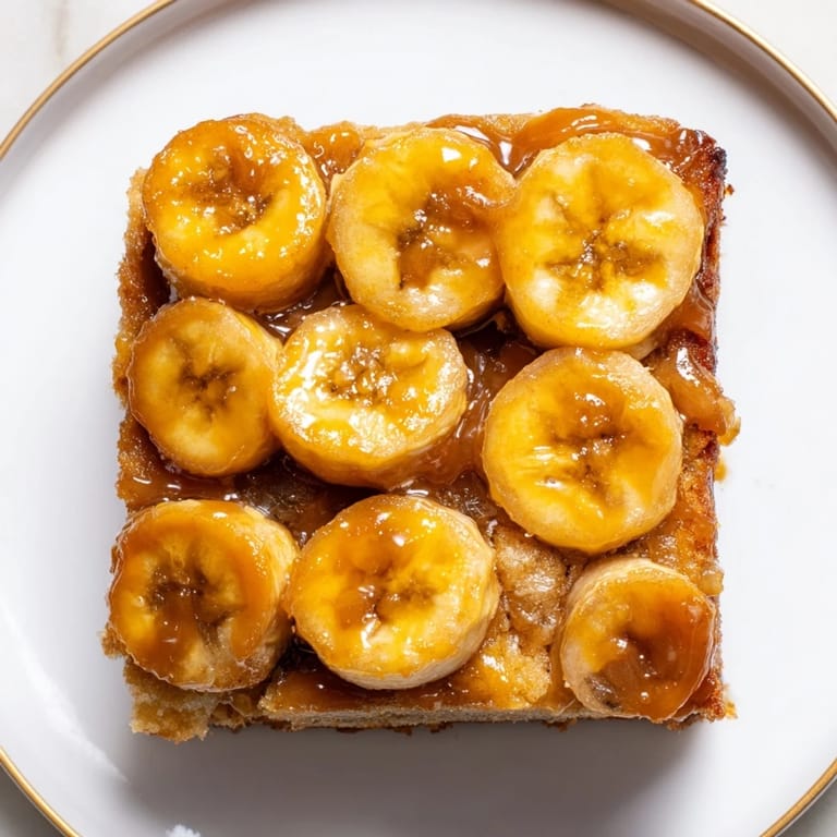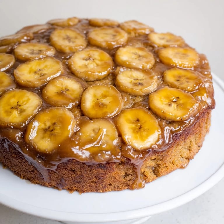 Merken Ein dekadenter Twist des klassischen Bananenbrots, dieser saftige Kuchen besticht durch karamellisierte Bananenscheiben auf einem zarten, geschmackvollen Teig. Perfekt, um reife Bananen zu verbrauchen, ist er ein Hingucker-Dessert oder ein Genuss zum Brunch.