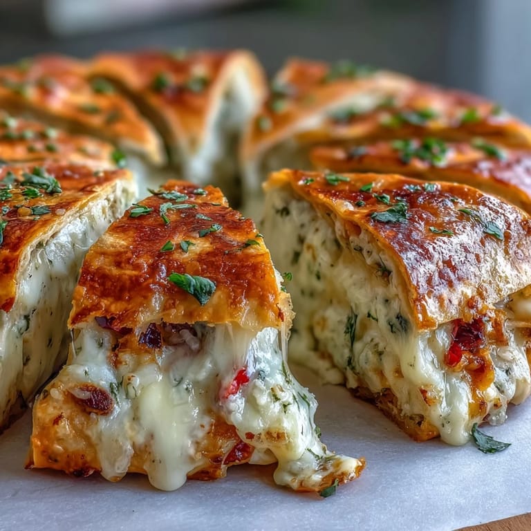 Drücken Sie die gefalteten Ränder fest zusammen und verwenden Sie nicht zu viel Füllung. Die geschmolzene Käsemischung versiegelt die Ränder während des Backens zusätzlich.
