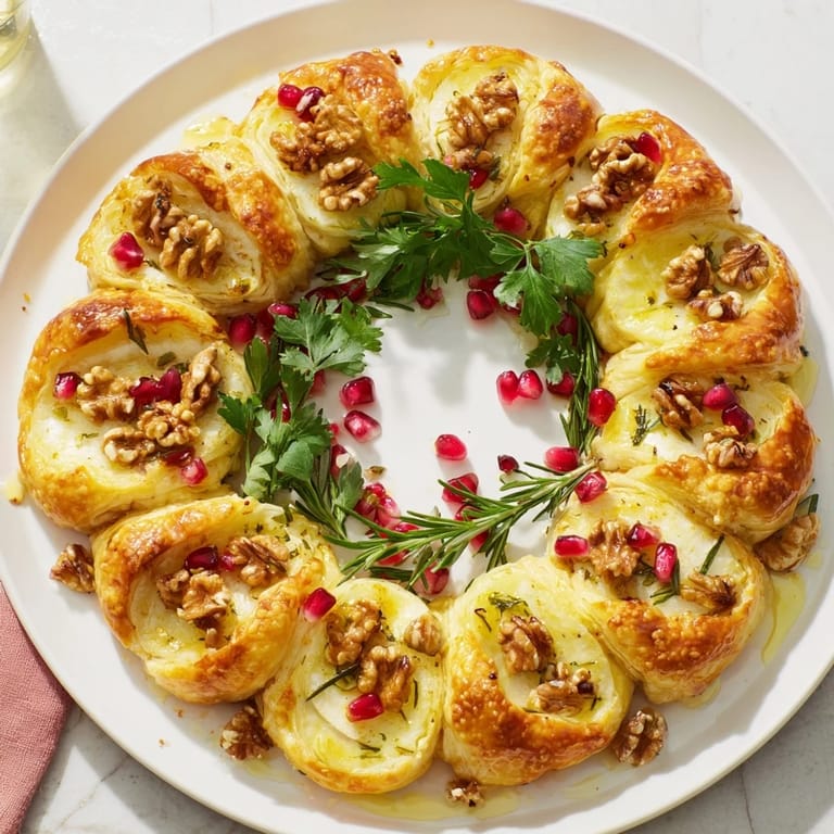 Ich habe diesen Kranz zum ersten Mal bei einer Weihnachtsfeier serviert und alle Gäste waren begeistert von der Kombination aus cremigem Brie und fruchtiger Frische.