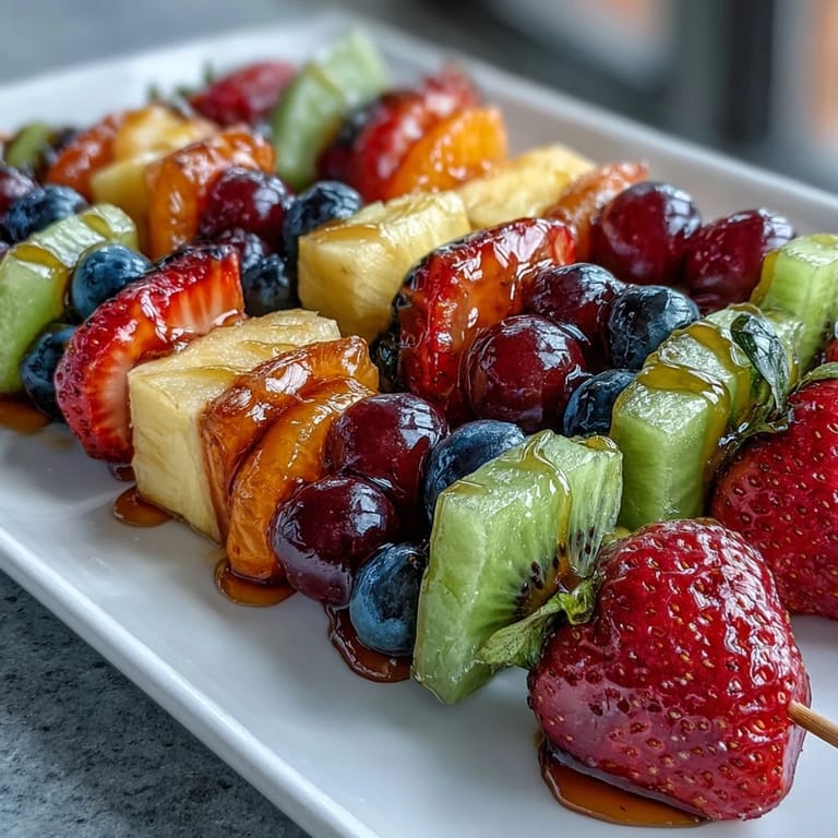 Merken Diese Rainbow Fruit Skewers mit Honig-Dip bringen bunte Freude auf deinen Tisch und sind der Inbegriff sommerlicher Frische! Das Spiel aus leuchtenden Farben macht sie nicht nur zu einem echten Hingucker, sondern auch zu einem gesunden Genuss für Groß und Klein. Ob als Snack für die nächste Gartenparty oder als fruchtiges Dessert an heißen Tagen – diese Regenbogen-Spieße lassen sich im Handumdrehen zubereiten und begeistern alle Gäste.