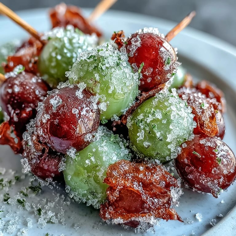 Saftige gefrorene Traubenspieße, in süß-säuerlichem Limettenzucker gewälzt, garniert. Merken