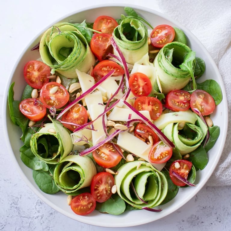 Merken Ich entdeckte diese Salatidee an einem sonnigen Nachmittag, als ich in meiner Küche stand und beobachtete, wie das Licht durch die Fenster auf meine frisch gekauften Zutaten fiel. Plötzlich erkannte ich ein Muster in der Art, wie ich instinktiv die Gemüsesorten anordnete, und es erinnerte mich an etwas, das ich in einem Kunstbuch gelesen hatte: den Goldenen Schnitt. Seitdem kreiere ich Salate nicht nur zum Essen, sondern als kleine Kunstwerke auf meinem Teller.