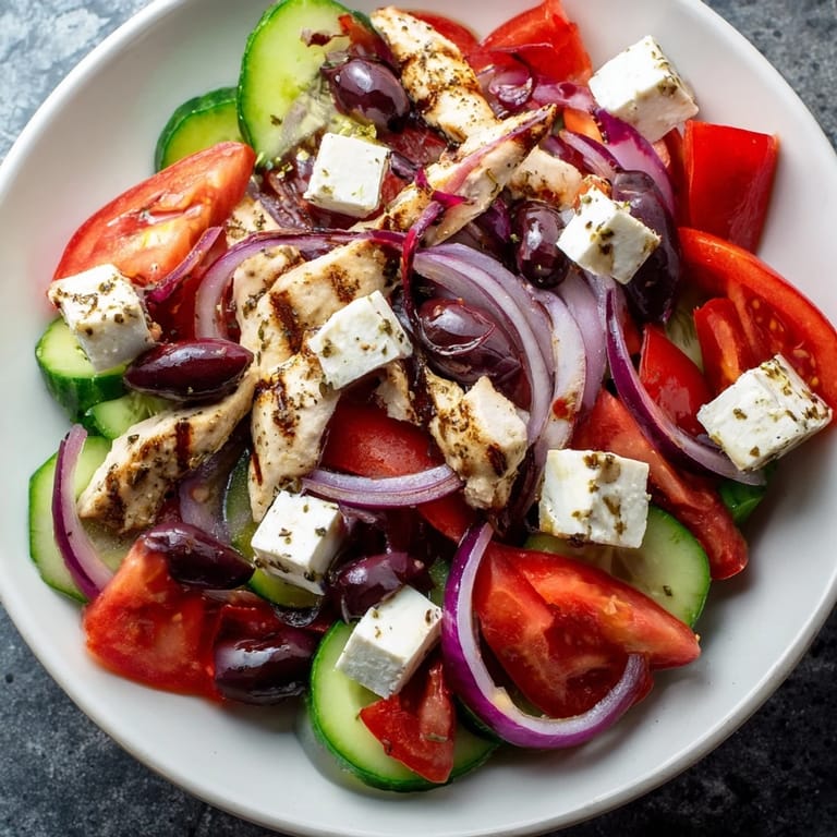 Ich erinnere mich, wie ich diesen Salat für meine Familie gemacht habe, an einem Abend, als alle viel zu heiß waren, um sich über das Essen aufzuregen. Das Hähnchen kam gerade vom Grill, duftete nach Oregano und Zitrone, und sobald ich es auf die bunten Gemüse legte, begann eine stille Zufriedenheit am Tisch. Mein jüngster Sohn aß eine ganze Portion ohne zu meckern – ein seltenes Wunder.