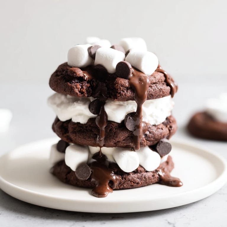 Merken Ein verspieltes, dekadentes Dessert mit Schichtungen aus Schokoladenkeksen und flauschigem Marshmallow-Frosting, gestapelt, um wie eine gemütliche Tasse heiße Schokolade auszusehen.