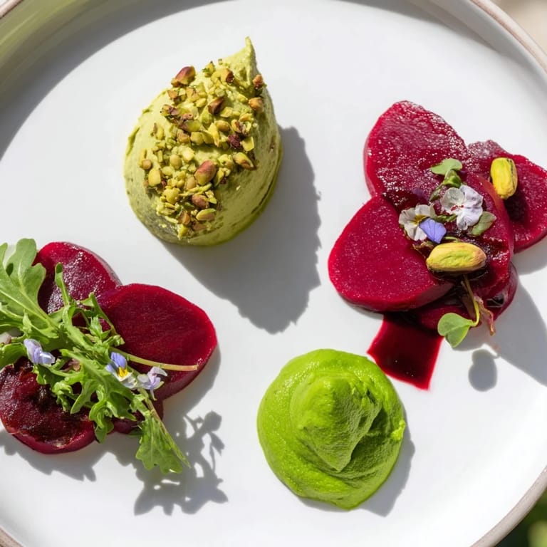 - Garnish: Eine Handvoll Baby-Rucolablätter, essbare Blüten (optional), extra gehackte Pistazien