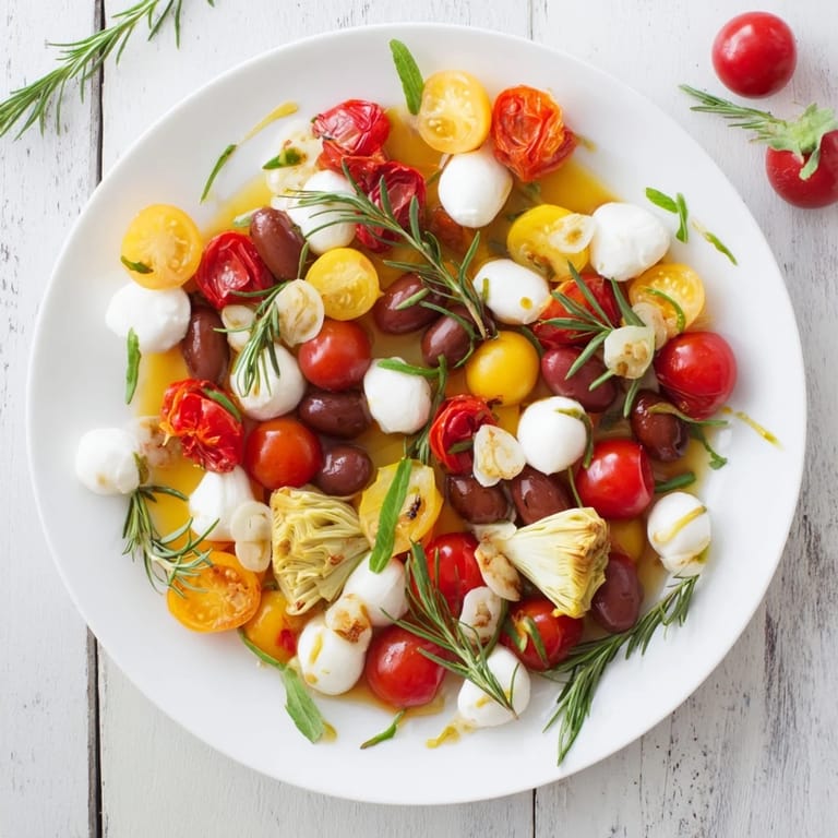 - Frische Produkte: 2 Tassen gemischte Kirschtomaten (rot, gelb oder orange), ganz oder halbiert; 1 Tasse kernlose grüne Trauben (optional, für zusätzliche Süße); 1 Tasse frische Basilikumblätter; 1 Tasse frische Rosmarinzweige (zur Dekoration)