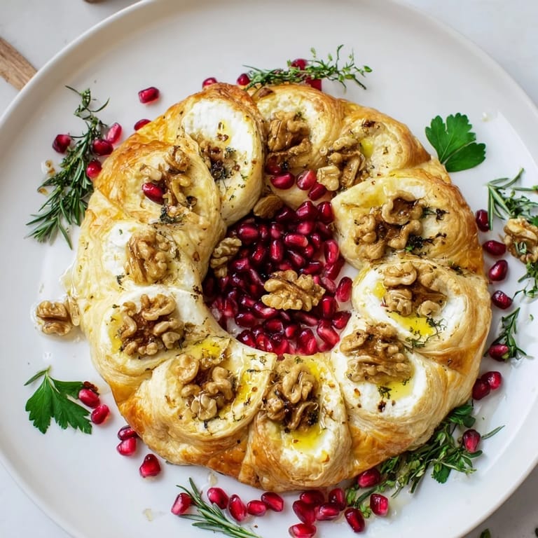 Ich habe diesen Kranz zum ersten Mal bei einer Weihnachtsfeier serviert und alle Gäste waren begeistert von der Kombination aus cremigem Brie und fruchtiger Frische.